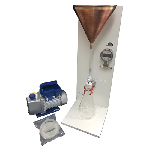 Este aparelho é utilizado em laboratórios e ensaios técnicos com a finalidade específica de medir a retenção de água em argamassa, utilizando o método do funil de Buchner. É um equipamento essencial para análises de qualidade e conformidade de materiais de construção.
